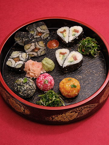 And then there's the tuna futomaki special, Chef Andy's giant maki roll filled with a giant mouthful of tuna, chu-toro, and o-toro. You cannot fit an entire piece of that futomaki in your mouth; that's how big it is. You also get five pieces of sushi: tuna, o-toro, salmon, hotate, and ikura. The botan ebi was included as a bonus. Bonus points for the bladderwrack seaweed, gari, cucumbers, and shiso. This was like two meals on one plate! I feel privileged to have experienced this very special Chef Andy creation. I've searched for a similar roll to this at all the top sushi spots. It doesn't seem to exist. The closest I could find is a futomaki that's not as big as this that's filled with scrap toro. Oy to scrap toro.